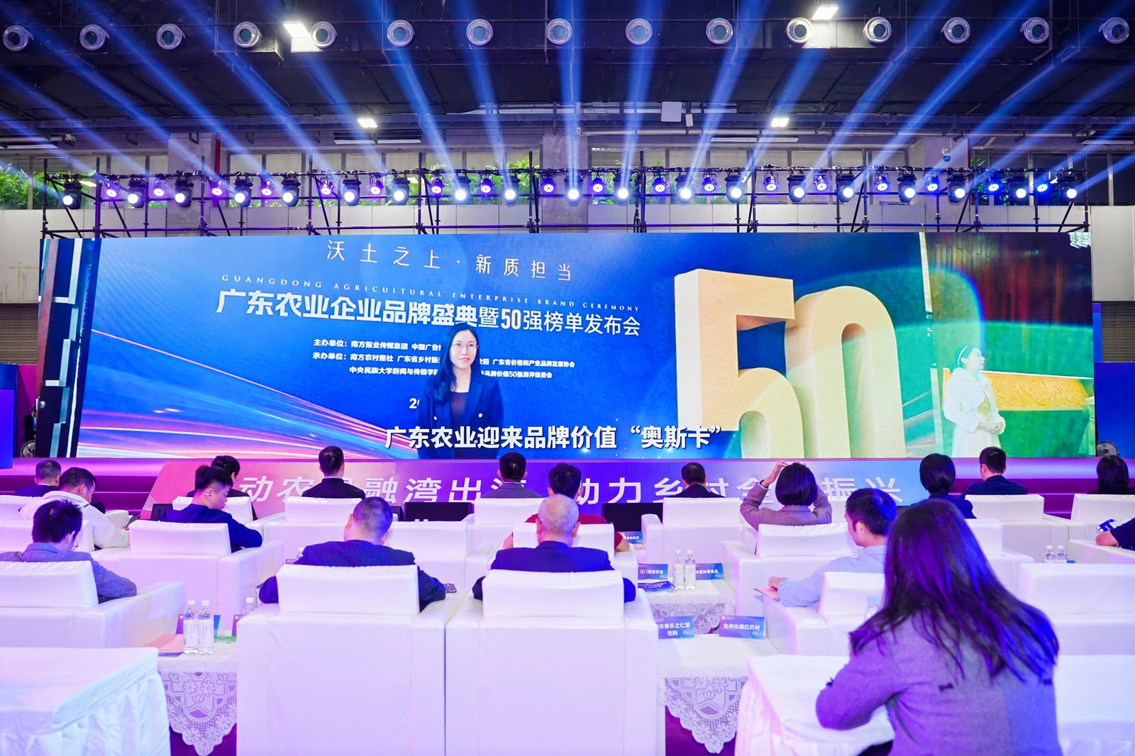 “广东农业企业品牌价值50强”受奖现场,粤海饲料集团工程中心侯翠红博士(右3)代表领奖