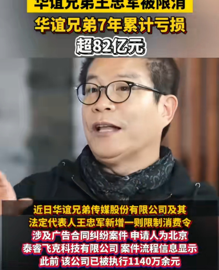 一则死心奢华令,撕开了曩昔影视巨头的困窘困局。近日,华谊昆季及法定代表东谈主王忠军因告白协议纠纷新增限消记载,涉诉推论金额超1140万元,而这不外是华谊深陷泥潭的冰山一角——最新三季度财报里,6259.56万元营收同比下滑31.61%,3946.2万元净赔本连接承压,回溯2018至2024年,七年累计巨亏超82亿元的数字,更让如故的“中国影视文娱第一股”光环碎得澈底。